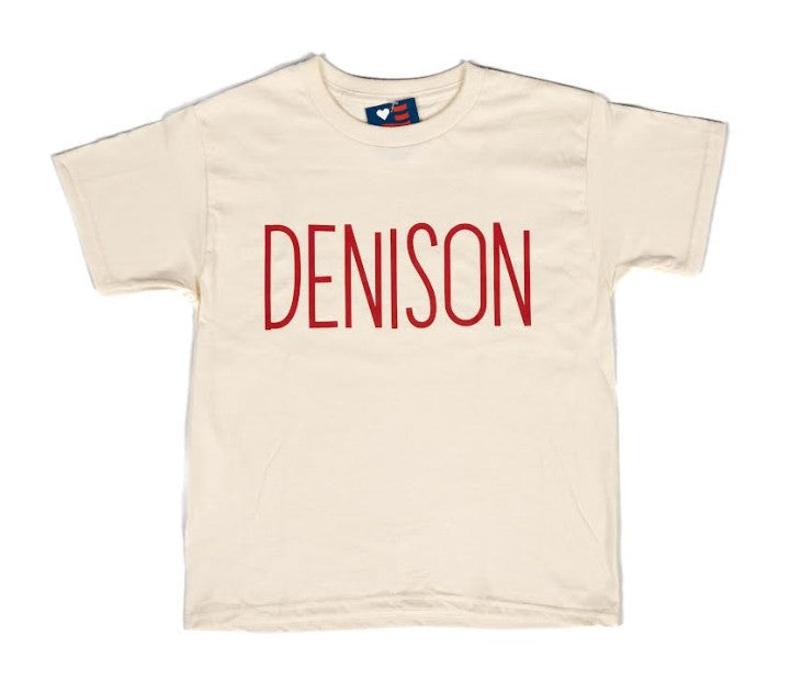 Town Pride Youth T-Shirt featuring Denison in red lettering