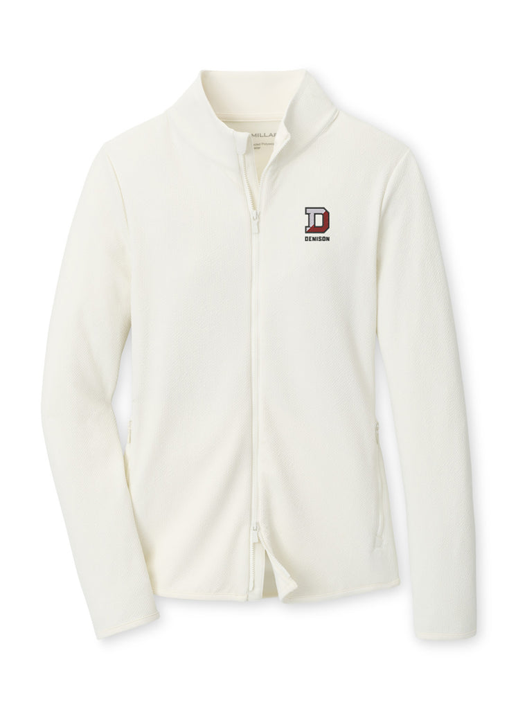 Peter Millar Ladies Lumi-Knit Lite Performance Full Zip Jacket. Featuring a double zipper and embroidered Denison logo on left chest